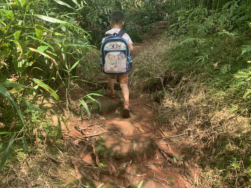 小学生上学之路,等修好了路之后,就可以坐拖拉机、面包车上学了,或者骑自行车上学了。