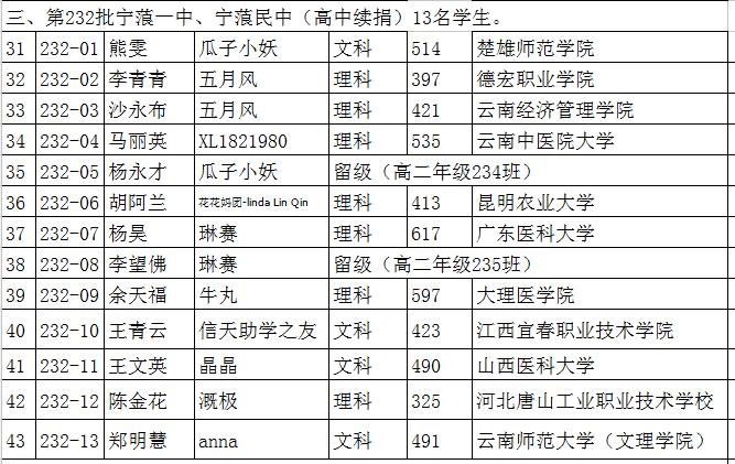 【喜讯】和冬华同学高考成绩694分,名列丽江市四县一区(宁蒗、华坪、永胜、玉龙四县和古城区)第二名。今年丽江市理科前五名均出自宁蒗县民中,宁蒗县很重视教育,多谢大家多年来对他们的资助。