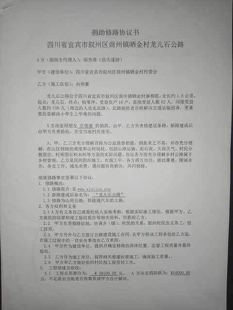 捐助修路协议书