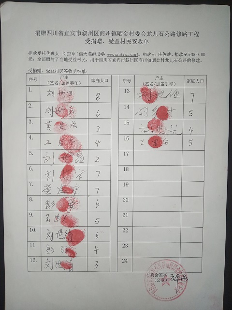 受益村民签字单