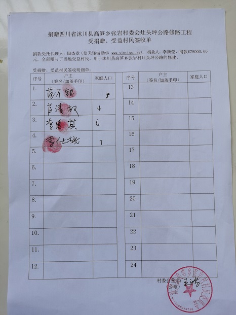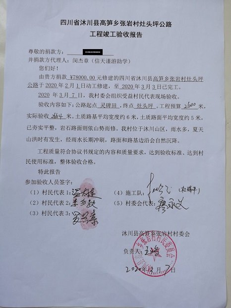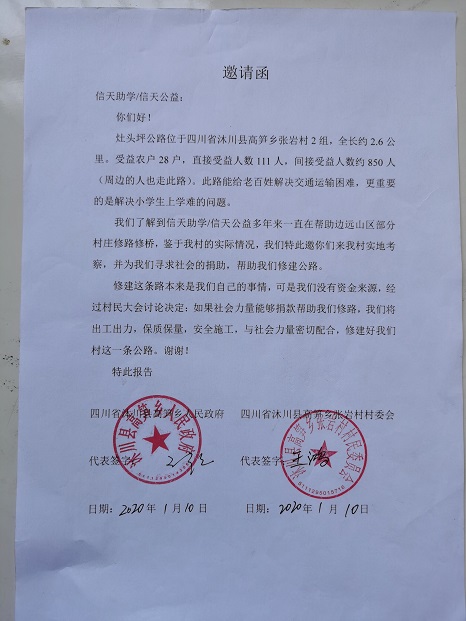 (1)爱心人捐款、村民投工投劳一起修土路,干季可以通车;