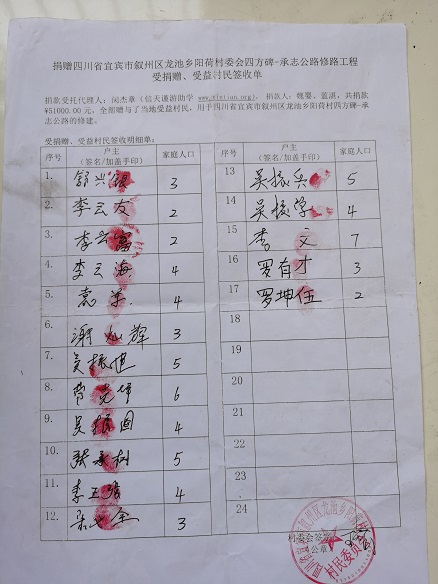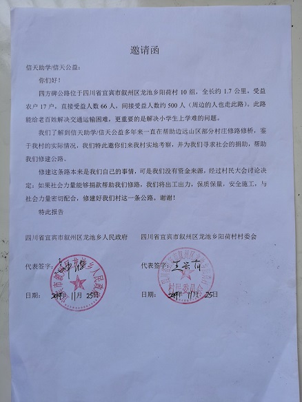 四方碑公路位于四川省宜宾市叙州区龙池乡阳荷村10组,全长约1.7公里,起点:四方碑,终点:沙儿埂。受益农户17户,直接受益人数66人,间接受益人数约500人(周边的人也走此路)。此路能给老百姓解决交通运输困难,更重要的是解决小学生上学难的问题。村民修路决心很大,全力集资,300元/户,共集资5100元,计划修通土路、支路、涵管、并铺设部份路面块石,力争雨季也能通车。