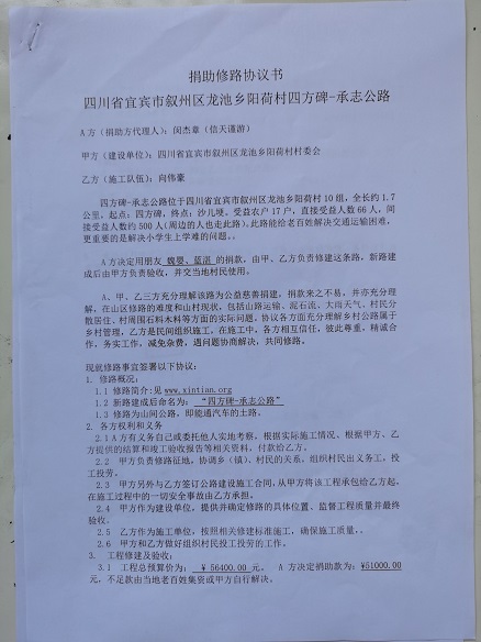 (1)爱心人捐款、村民投工投劳一起修土路,干季可以通车;