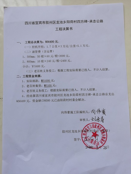 (5)修路预算分好几部分,有挖掘机、涵管、炸药爆破(山崖需要爆破)、堡坎、村民义务工、征地等。修路,我们不全包,我们出一大部分钱:挖掘费用、山崖爆破等。村民出义务工、涵管、征地费、村民小额集资。