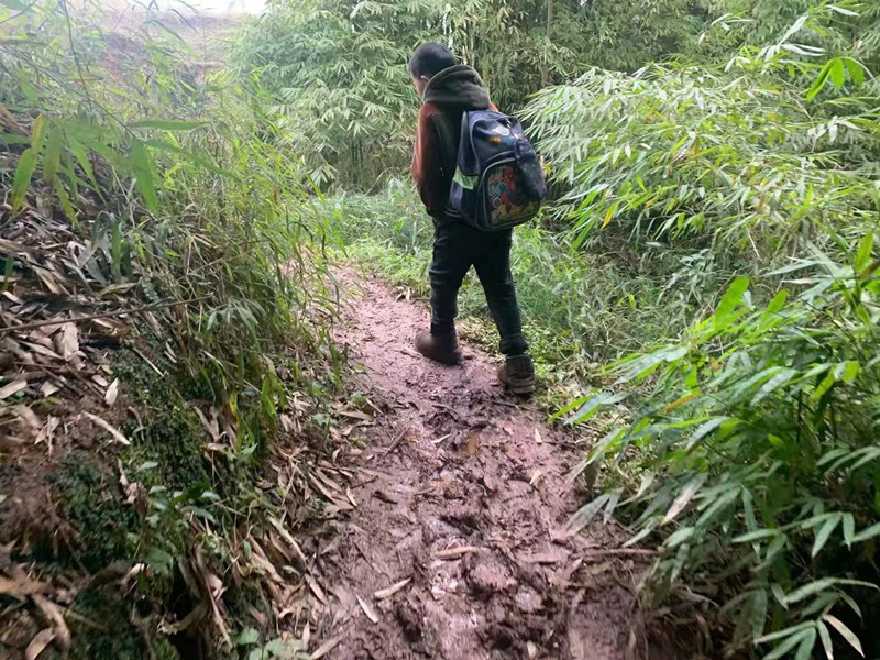 小学生上学之路,等修好了路之后,就可以坐三轮车、面包车上学了,或者骑自行车上学了。