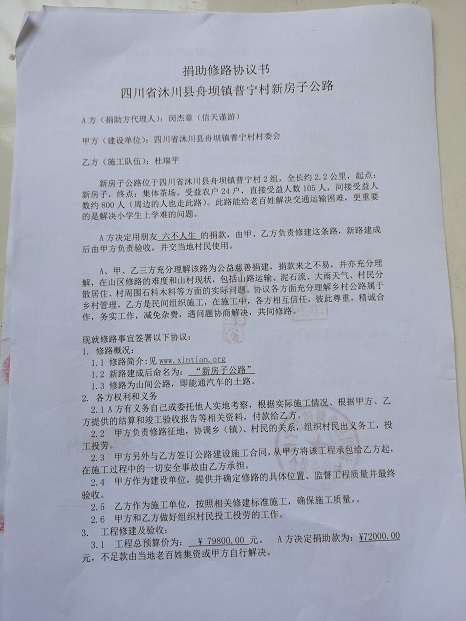 (1)爱心人捐款、村民投工投劳一起修土路,干季可以通车;