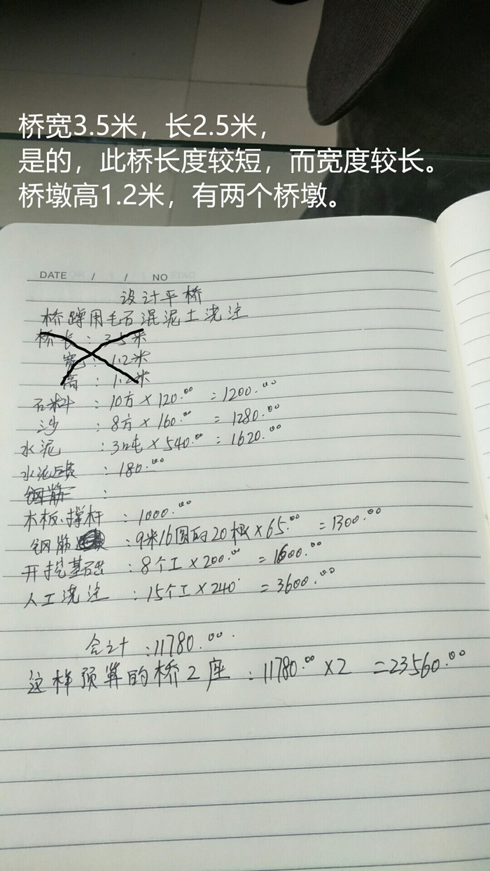 预算:1座桥11780元,2座桥:23560元,两座桥取整预算为24000元。