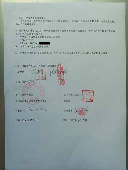 捐助修路协议书