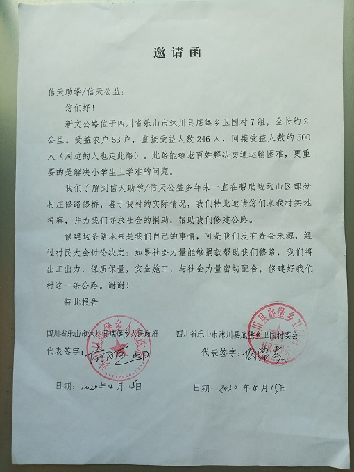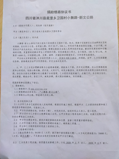 (1)爱心人捐款、村民投工投劳一起修土路,干季能通车;