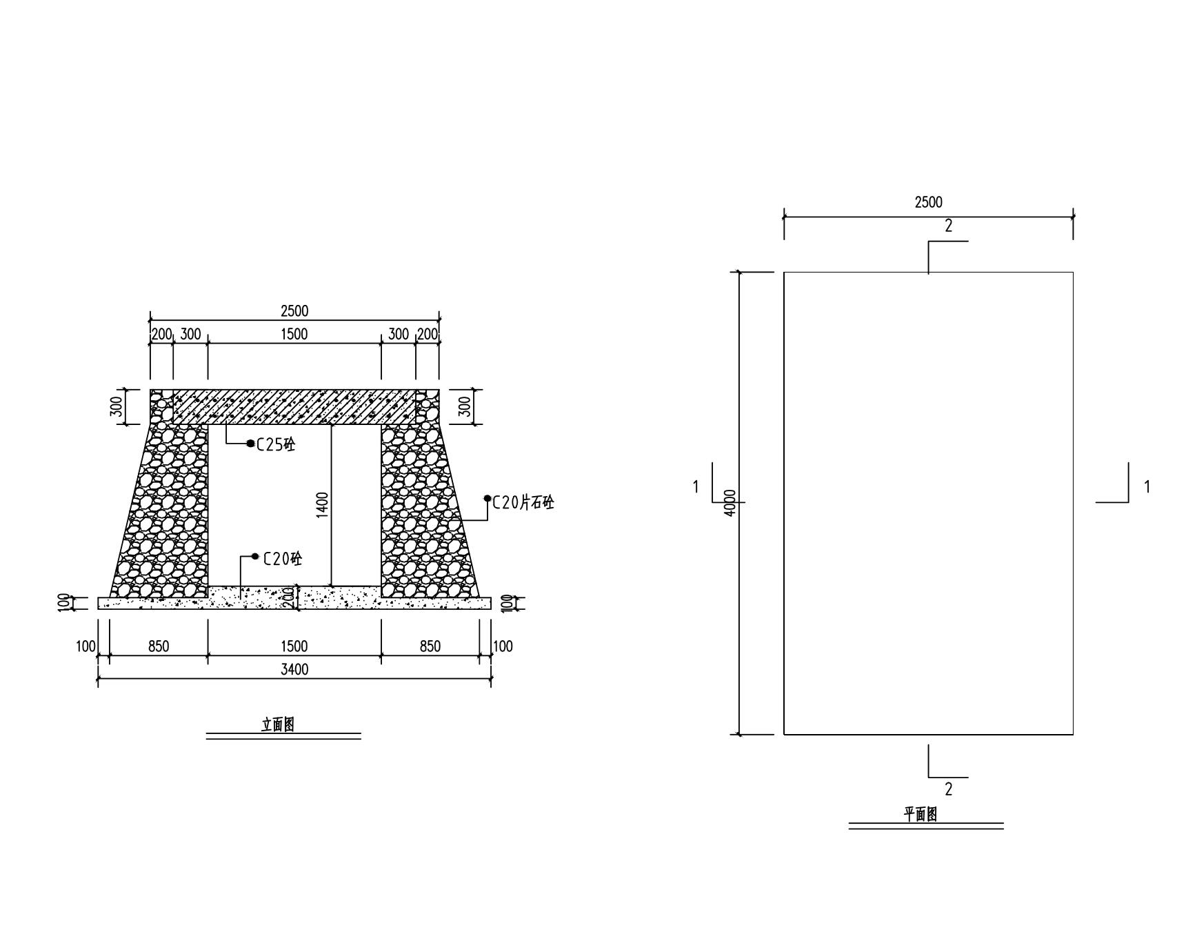 桥墩用毛石混凝土,桥面用双层钢筋混凝土。