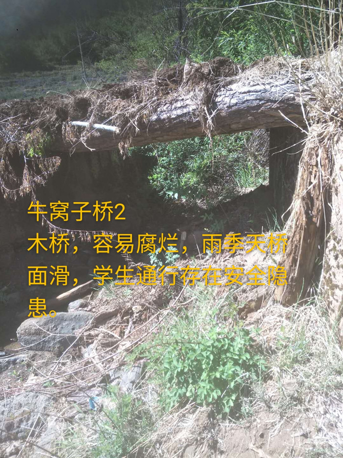 云南省宁蒗县翠玉乡翠玉村委会牛窝子村,是个大村,具体分三个小村,即长坪村有31户、嘎左村有30户、牛窝子村有52户,共有113户人家,居住着汉族、藏族、普米族、彝族、摩梭人5个民族468人。其中在翠玉中心完小就读的学生有22人,在翠玉中学就读的有15人,都要经过这3座小桥。到了雨季,原来小桥位置处水流不畅,存在安全隐含,村民希望能帮他们修桥。