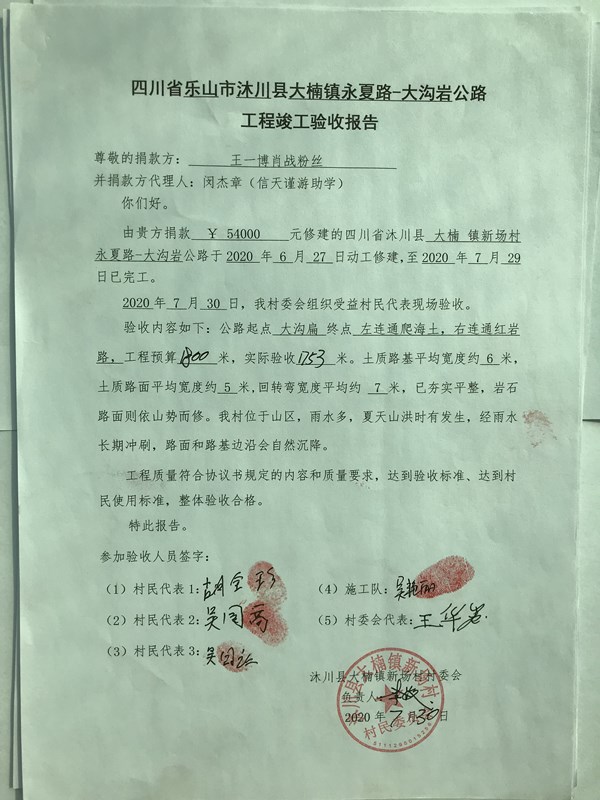 修路捐款人:王一博肖战粉丝