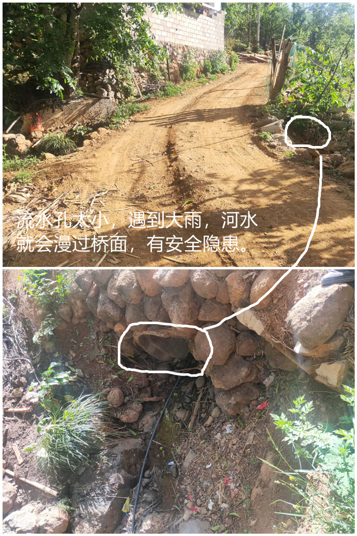 到了雨季,原来小桥位置处水流不畅,存在安全隐含,村民希望能帮他们修桥。