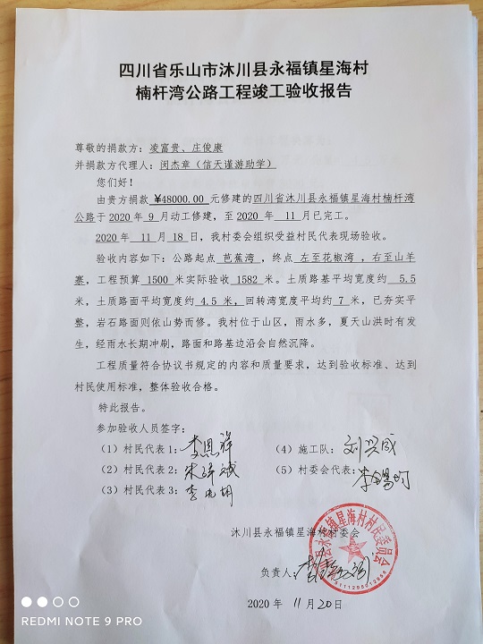 (5)修路预算分好几部分,有挖掘机、涵管、炸药爆破(山崖需要爆破)、堡坎、村民义务工、征地等。修路,我们不全包,我们出一大部分钱:挖掘费用、山崖爆破等。村民出义务工、涵管、征地费、村民小额集资。