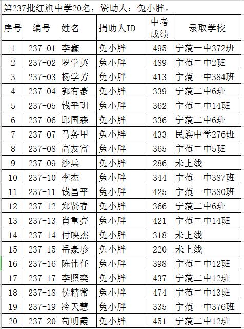 标题: 2020年信天助学中考成绩及录取学校情况(2020年9月29日更新)