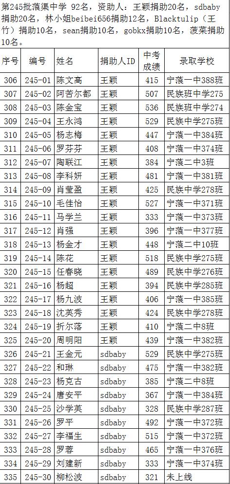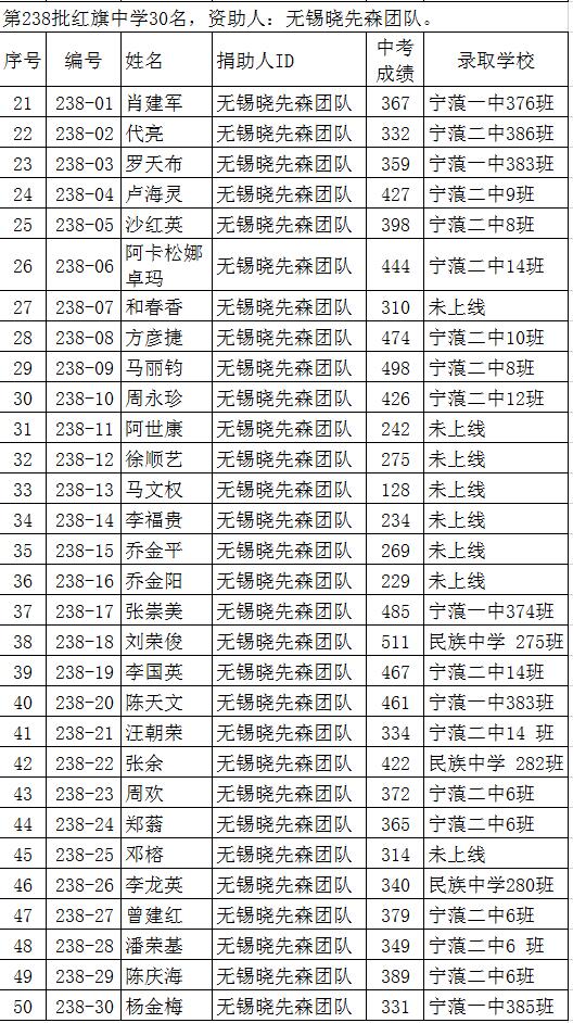 您资助的初中学生今年中考成绩出来了,今年中考录取分数线预计328分。孩子们高中录取学校情况已经更新了,谢谢大家多年来的支持,录取情况我们已经回复在