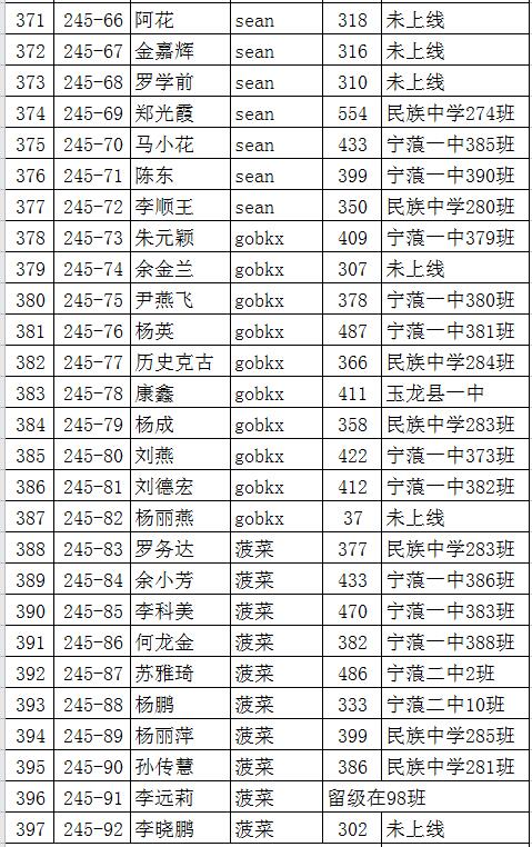 以下是各批次学生中考成绩及录取学校明细: