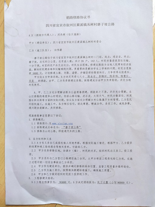 捐助修路协议书