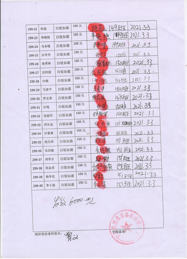 第299批红桥中学(2020年9月-2021年2月)受助生签收单