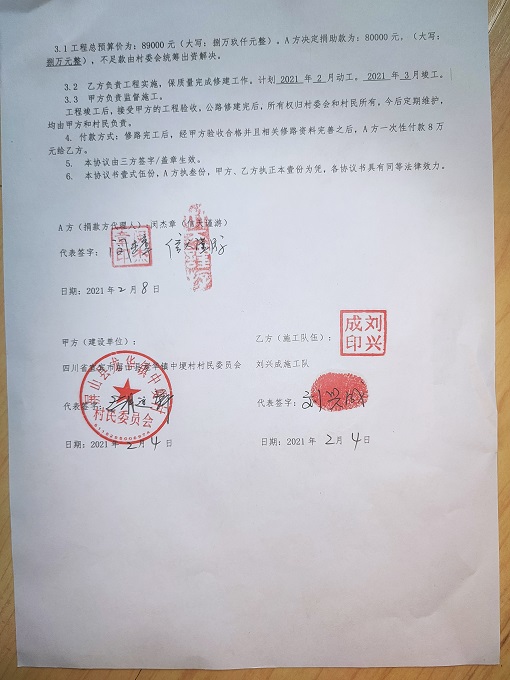 捐助修路协议书