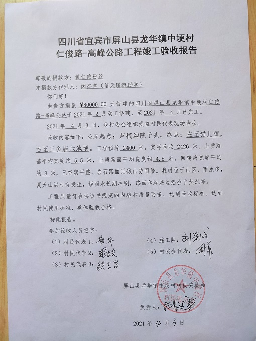 (5)修路预算分好几部分,有挖掘机、涵管、炸药爆破(山崖需要爆破)或者岩石破碎、堡坎、村民义务工、征地等。修路,捐款方不全包,捐款方出一大部分钱:挖掘费用、部分山崖爆破(如有的话)或破碎等。村民出义务工、涵管、征地费、或部分破碎费用,村民小额集资。
