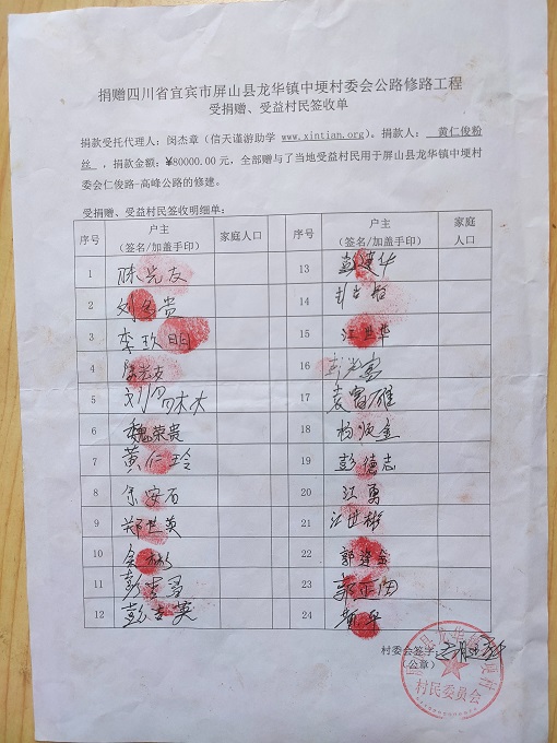 受益村民签字单