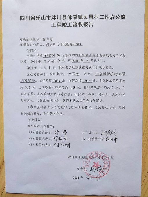 标题: 第283条:四川省沐川县沐溪镇凤凰村6组二坉岩公路(徐伟鸿)