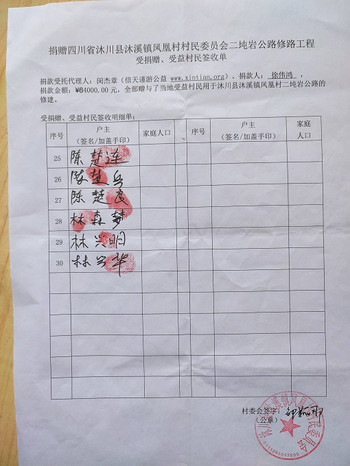受益村民签字单