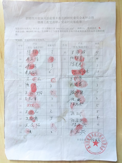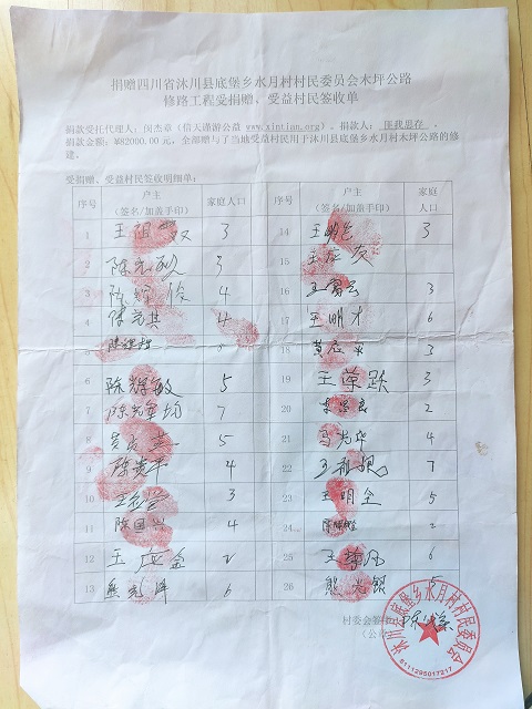 受益村民签字单