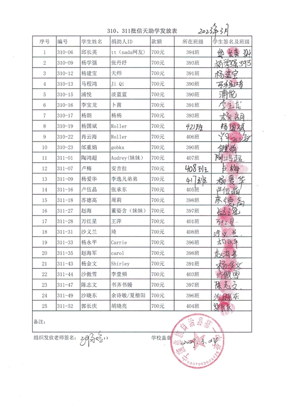 第310批高中续捐(2022年9月-2023年2月)受助学生签收单