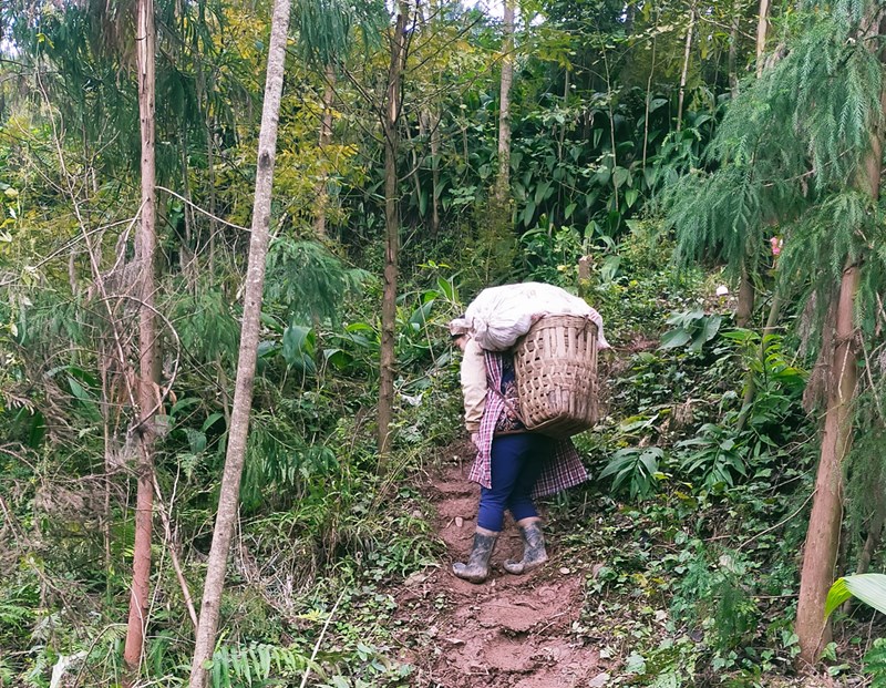 这里世代不通公路,村民靠肩扛背驮,背运东西,他们渴望修路。