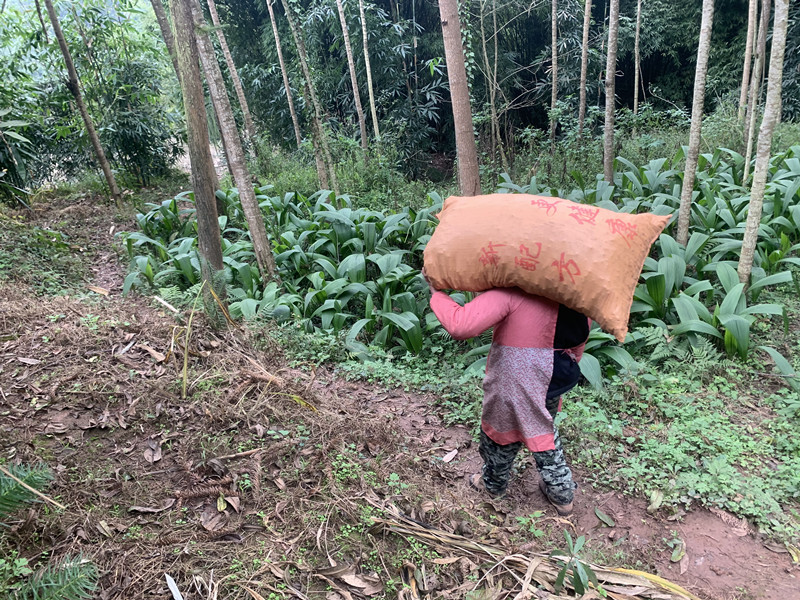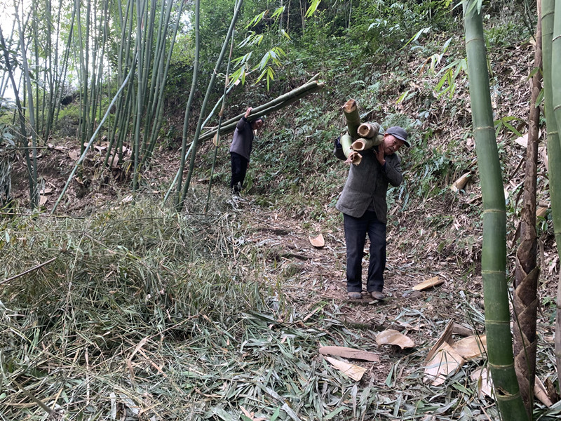村民劳动,修好路之后,就不用肩扛背驮了,可以用四轮车运输了。