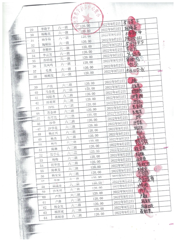白草坪幼儿园,2022-2023年上学期早餐计划第一次发款签收单