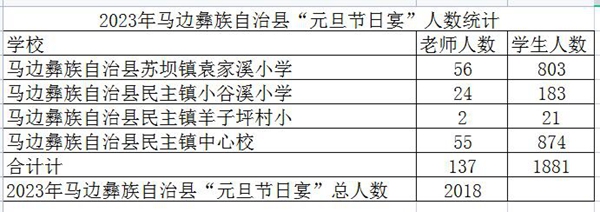 马边彝族自治县2023年元旦慈善午宴各校人数统计: