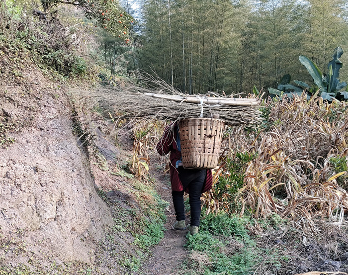 村民劳动,他们渴望修路。修一条能跑四轮车的大路,这样就不用肩扛背驮了。