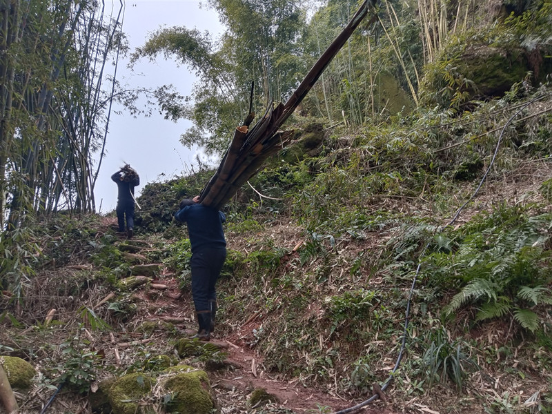 村民劳动,他们渴望修路,修一条能跑四轮车的路,这样就不用肩扛背驮了。