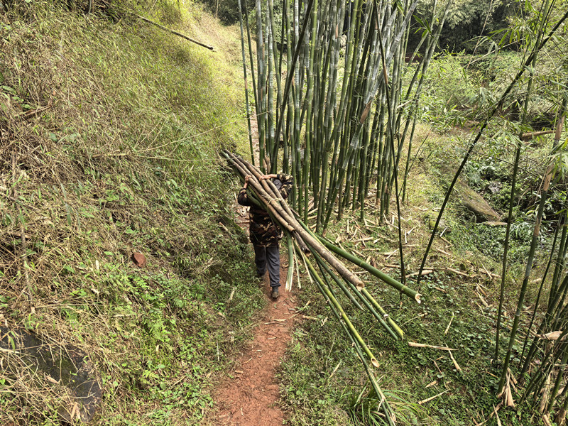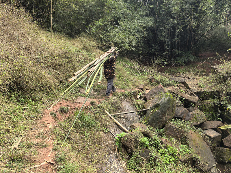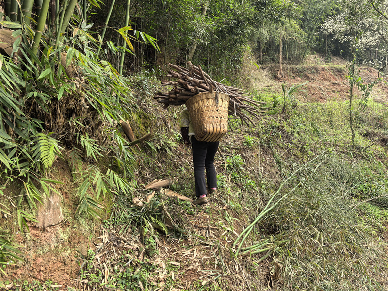 村民劳动,肩扛背驮。