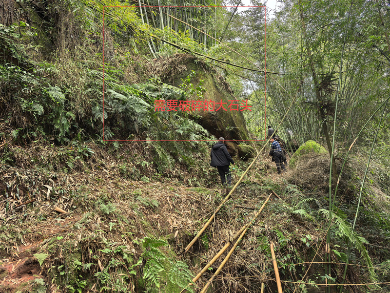 2、特别说明:A段有3处红色硬石头约200米,需要破碎降坡,B段全长约470米,其中300米都是红色硬石头,需挖掘机用破碎锤硬打一条通道且有2处需用破碎出来的大石头砌堡坎,施工难度特别大,需增加破碎费用30000元。(根据岩层的坚硬程度来估计)