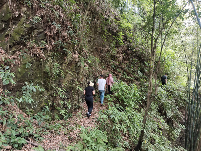 勘察路线,计划把这里的羊肠小道扩宽修建成能跑四轮车的乡间土质公路。