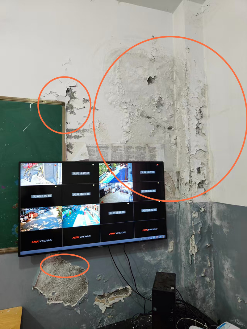 1、原砖混结构的主体,存在安全隐患,漏水越来越严重,不具备维修价值,现处理方式是在外墙上涂抹防水胶水,只能短时间解决,但无法杜绝漏水。况且胶水为化学物质,水池是全校老师学生饮用及生活唯一水源,长期饮用恐有其他后果。