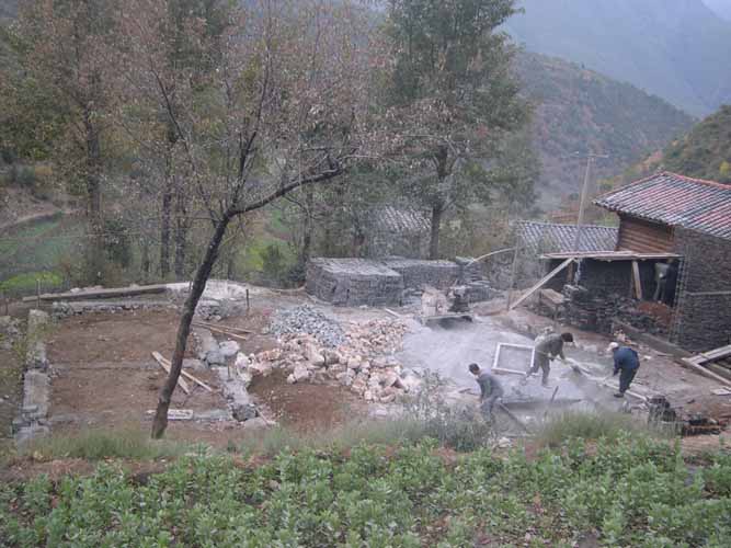 十、修建方式:此学校不发包材料,属于我们自己选订材料,运输至工地。施工队只收取人工费,当地村民出大批义务工,村里出木头、石头等当地能提供的材料。