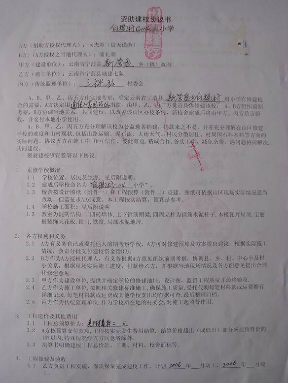 二、《资助建校协议书》及附件《图纸》和《工程预算单 》