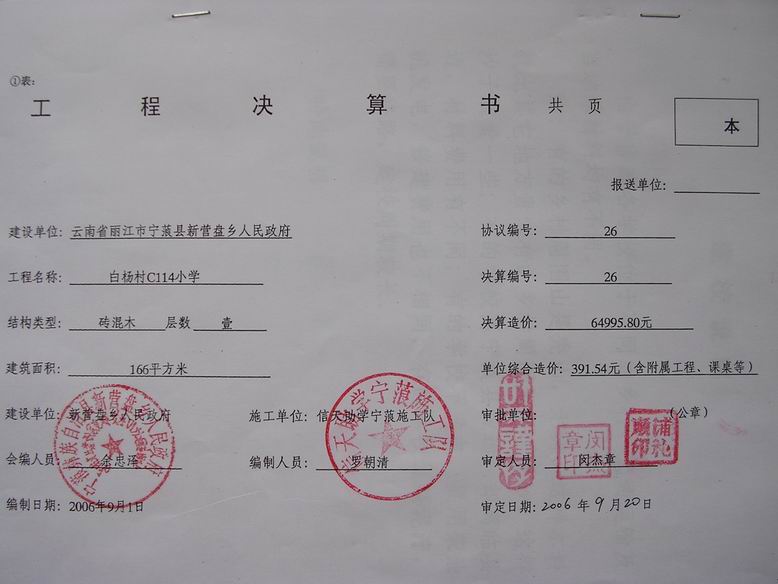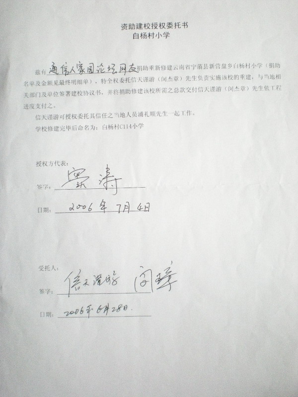 2006年通信人家园希望之路捐建云南白杨村C114小学捐款总目录