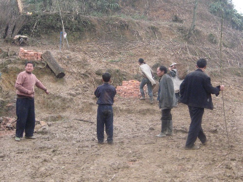 照片为村委会和村民共同验收地基,并提出意见和建议。